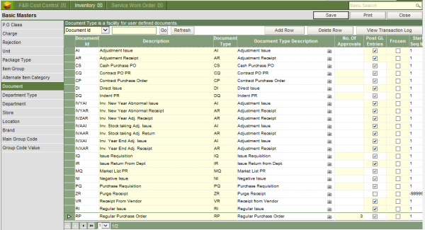 All the possible type of transactions required in maintaining inventory of items has been termed as document type in WebProl’IFIC. Each of the type of transactions has been assigned a unique two character code, which the system understands and has been already configured into the system at the time of installation. For example, a request or indent for purchase of items has been defined as PQ (Purchase Request). At the same time the system has the flexibility to allow the user to define his/her own abbreviations for a type of transaction, referred to as document, but the same needs to be mapped to the system defined document type. As an example, user may want to define the PQ (purchase request) as RPQ (Purchase request for regular items), which can be done by mapping RPQ to PQ.