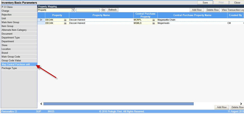 The property has to be mapped with all the units that will do central procurement for it.