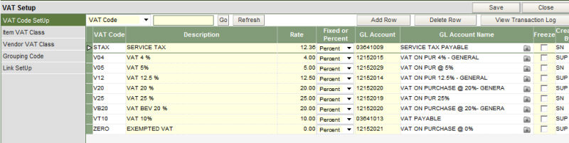 In this section, all the codes created in the previous sections of the VAT setup, are put together to create a link with codes of the VAT percentages. It is from this section that the system understands how much percentage of VAT is to be applied and on which items.